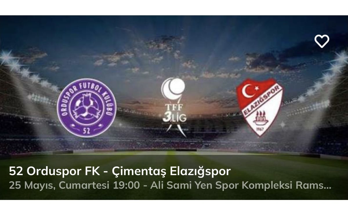 2023-2024 sezonunda TFF 3.Lig Play-Off Finali’nde 52 Orduspor Futbol Kulübü ile Çimentaş Elazığspor arasındaki maçın Ali Sami Yen Spor Kompleksi Rams Park’ta oynanacak. Kritik maç öncesinde ise bilet satışı başladı.